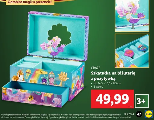 Cena produktu różni się w zależności od wybranego sklepu. Niestety nie posiadamy danych o aktualnych promocjach, jednak wśród archiwalnych ofert Szklatułka na biżuterię z pozytywką Craze kosztuje od 49,99 zł.