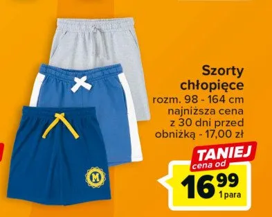 Cena produktu r贸偶ni si臋 w zale偶no艣ci od wybranego sklepu. Niestety nie posiadamy danych o aktualnych promocjach, jednak w艣r贸d archiwalnych ofert Szorty ch艂opi臋ce 98-164 cm kosztuje od 16,99 z艂 do 24,99 z艂.