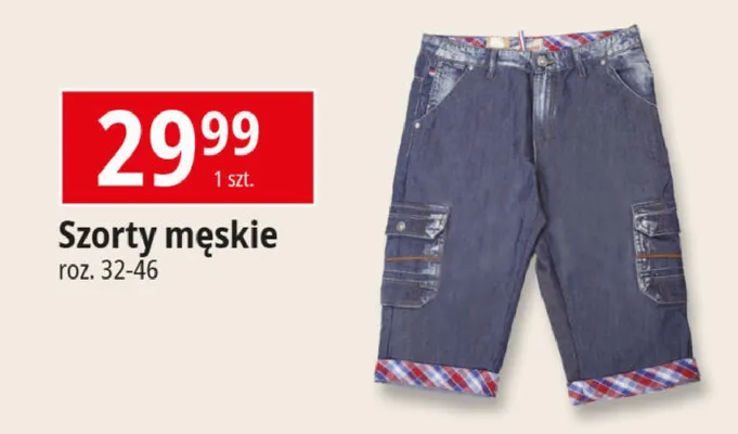 Cena produktu r贸偶ni si臋 w zale偶no艣ci od wybranego sklepu. Niestety nie posiadamy danych o aktualnych promocjach, jednak w艣r贸d archiwalnych ofert Szorty m臋skie rozm. 32-46 kosztuje od 29,99 z艂.