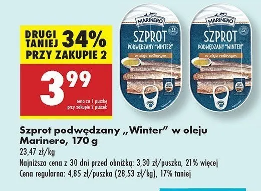 Ile kosztuje Szprot podw臋dzany winter w oleju ro艣linnym Marinero?