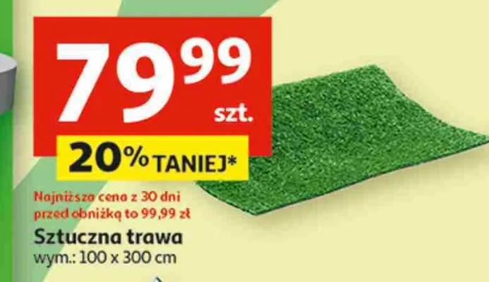 Cena produktu r贸偶ni si臋 w zale偶no艣ci od wybranego sklepu. Niestety nie posiadamy danych o aktualnych promocjach, jednak w艣r贸d archiwalnych ofert Sztuczna trawa 100 x 300 cm kosztuje od 79,99 z艂.