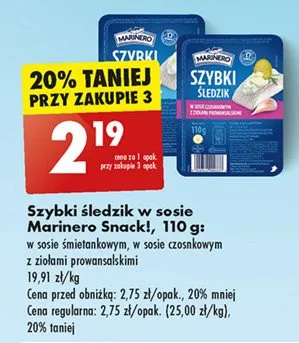 Ile kosztuje Szybki 艣ledzik w sosie czosnkowym Marinero snack!?
