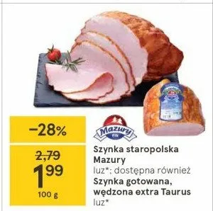 Cena produktu r贸偶ni si臋 w zale偶no艣ci od wybranego sklepu. Niestety nie posiadamy danych o aktualnych promocjach, jednak w艣r贸d archiwalnych ofert Szynka gotowana w臋dzona extra Mazury e艂k kosztuje od 19,9 z艂.