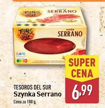 Cena produktu r贸偶ni si臋 w zale偶no艣ci od wybranego sklepu. Niestety nie posiadamy danych o aktualnych promocjach, jednak w艣r贸d archiwalnych ofert Szynka jam贸n TESOROS DEL SUR kosztuje od 6,79 z艂 do 7,49 z艂.