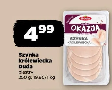 Zastanawiasz si臋, gdzie kupi膰 i ile kosztuje produkt Szynka kr贸lewska Silesia duda? Regularnie sprawdzamy, czy jest promocja na ten produkt w Biedronka, Lidl, Kaufland, Auchan, Netto, Makro i innych sklepach. Aktualnie posiadamy 2 oferty promocyjne na ten produkt. Ceny zaczynaj膮 si臋 od 33,99z艂!