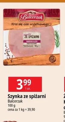 Cena produktu r贸偶ni si臋 w zale偶no艣ci od wybranego sklepu. Niestety nie posiadamy danych o aktualnych promocjach, jednak w艣r贸d archiwalnych ofert Szynka ze spi偶arni Balcerzak kosztuje od 3,99 z艂 do 4,49 z艂.