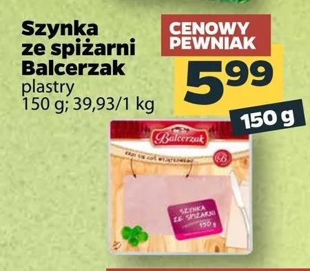 Cena produktu r贸偶ni si臋 w zale偶no艣ci od wybranego sklepu. Niestety nie posiadamy danych o aktualnych promocjach, jednak w艣r贸d archiwalnych ofert Szynka ze spi偶arni Balcerzak kosztuje od 3,99 z艂 do 5,99 z艂.