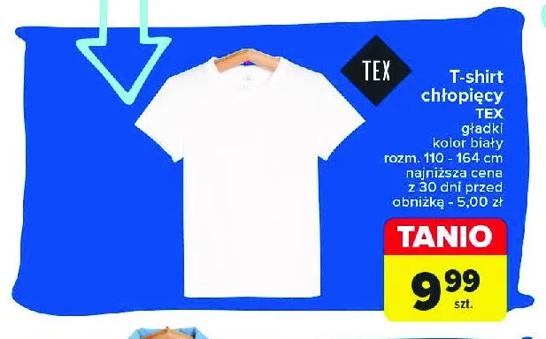 Cena produktu r贸偶ni si臋 w zale偶no艣ci od wybranego sklepu. Niestety nie posiadamy danych o aktualnych promocjach, jednak w艣r贸d archiwalnych ofert T-shirt ch艂opi臋cy g艂adki 110-164 Tex kosztuje od 9,99 z艂.