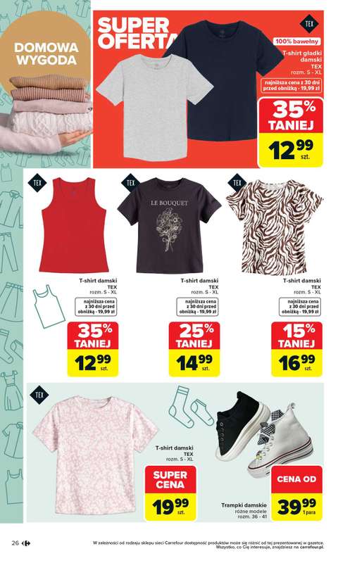 Cena produktu r贸偶ni si臋 w zale偶no艣ci od wybranego sklepu. Produkt T-shirt damski s-4xl mo偶esz kupi膰 w promocji ju偶 od 14,99 z艂 do 110,58 z艂. Najta艅sza oferta, jak膮 mamy w naszej bazie jest z sieci Carrefour. T-shirt damski s-4xl kosztuje aktualnie 14,99 z艂. Zobacz ofert臋