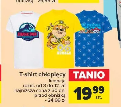 Zastanawiasz si臋, gdzie kupi膰 i ile kosztuje produkt T-shirt dzieci臋cy z kr贸tkim r臋kawem jurassic park? Regularnie sprawdzamy, czy jest promocja na ten produkt w Biedronka, Lidl, Kaufland, Auchan, Netto, Makro i innych sklepach. Aktualnie posiadamy 1 ofert臋 promocyjn膮 na ten produkt. Ceny zaczynaj膮 si臋 od 16,99z艂!
