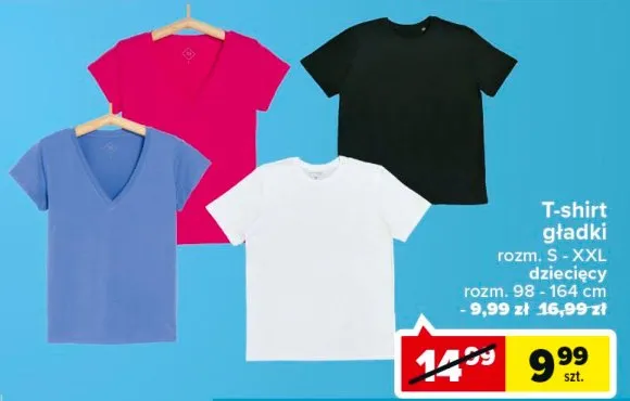 Cena produktu r贸偶ni si臋 w zale偶no艣ci od wybranego sklepu. Niestety nie posiadamy danych o aktualnych promocjach, jednak w艣r贸d archiwalnych ofert T-shirt g艂adki s-2xl kosztuje od 9,99 z艂.