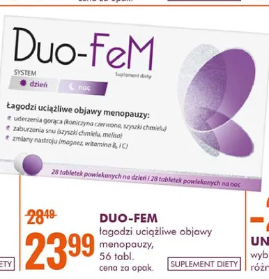 Gdzie mo偶na tanio kupi膰 produkt Tabletki 艂agodz膮ce objawy menopauzy na dzie艅 i na noc Duo-fem?