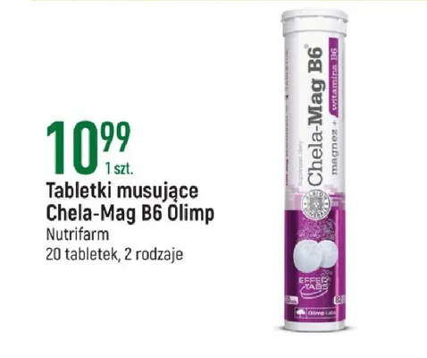 Cena produktu r贸偶ni si臋 w zale偶no艣ci od wybranego sklepu. Niestety nie posiadamy danych o aktualnych promocjach, jednak w艣r贸d archiwalnych ofert Tabletki musuj膮ce Olimp labs chela-mag b6 kosztuje od 10,99 z艂.