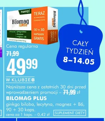 Cena produktu różni się w zależności od wybranego sklepu. Niestety nie posiadamy danych o aktualnych promocjach, jednak wśród archiwalnych ofert Tabletki na zaburzenia krążenia i obniżoną sprawność umysłową Bilomag kosztuje od 49,99 zł.