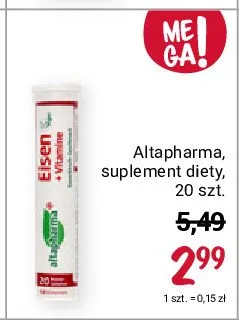 Cena produktu różni się w zależności od wybranego sklepu. Niestety nie posiadamy danych o aktualnych promocjach, jednak wśród archiwalnych ofert Tabletki żelazo + witaminy o smaku wiśniowym Altapharma kosztuje od 2,99 zł.