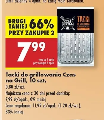 Cena produktu r贸偶ni si臋 w zale偶no艣ci od wybranego sklepu. Niestety nie posiadamy danych o aktualnych promocjach, jednak w艣r贸d archiwalnych ofert Tacki do grilla Czas na grill kosztuje od 6,99 z艂 do 10,99 z艂.