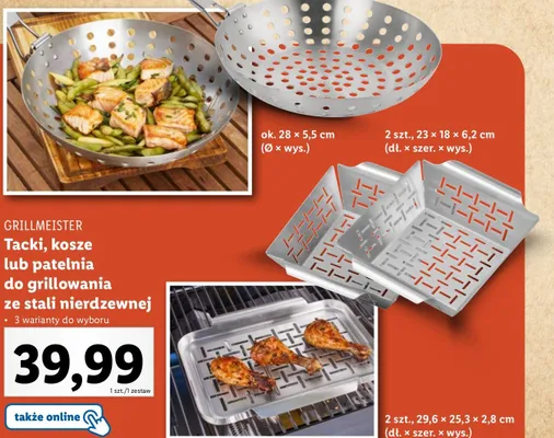 Cena produktu r贸偶ni si臋 w zale偶no艣ci od wybranego sklepu. Niestety nie posiadamy danych o aktualnych promocjach, jednak w艣r贸d archiwalnych ofert Tacki do grillowania 23 x 18 x 6.2 cm Grill meister kosztuje od 39,99 z艂.