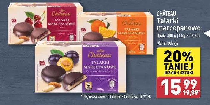 Gdzie mo偶na tanio kupi膰 produkt Talarki marcepanowe z nadzieniem 艣liwkowym Chateau Chateau (aldi)?