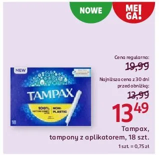 Cena produktu r贸偶ni si臋 w zale偶no艣ci od wybranego sklepu. Niestety nie posiadamy danych o aktualnych promocjach, jednak w艣r贸d archiwalnych ofert Tampony non-plastic regular Tampax kosztuje od 11,99 z艂 do 13,49 z艂.