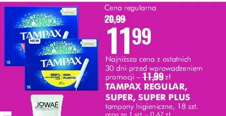 Cena produktu r贸偶ni si臋 w zale偶no艣ci od wybranego sklepu. Niestety nie posiadamy danych o aktualnych promocjach, jednak w艣r贸d archiwalnych ofert Tampony non-plastic super Tampax kosztuje od 11,99 z艂.