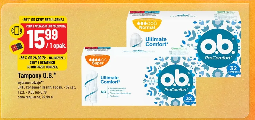 Ile kosztuje Tampony ultimate comfort super O.b. procomfort?