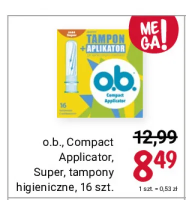 Przegl膮daj podobne oferty promocyjne do Tampony z aplikatorem super O.b. compact applicator!