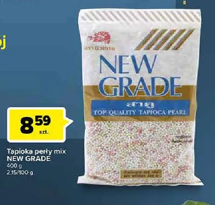 Cena produktu r贸偶ni si臋 w zale偶no艣ci od wybranego sklepu. Niestety nie posiadamy danych o aktualnych promocjach, jednak w艣r贸d archiwalnych ofert Tapioka pere艂ki NEW GRADE kosztuje od 5,85 z艂 do 8,99 z艂.