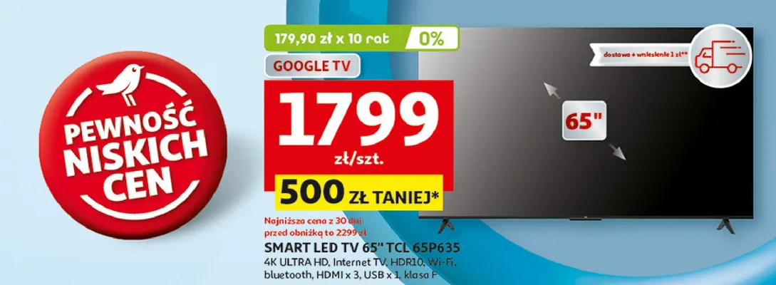 Gdzie mo偶na tanio kupi膰 produkt Telewizor 65" led 65p635 Tcl?