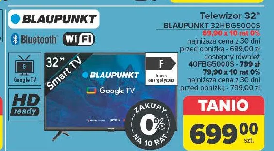 Cena produktu r贸偶ni si臋 w zale偶no艣ci od wybranego sklepu. Niestety nie posiadamy danych o aktualnych promocjach, jednak w艣r贸d archiwalnych ofert Telewizor led 40" 40fbg5000s Blaupunkt kosztuje od 799 z艂.