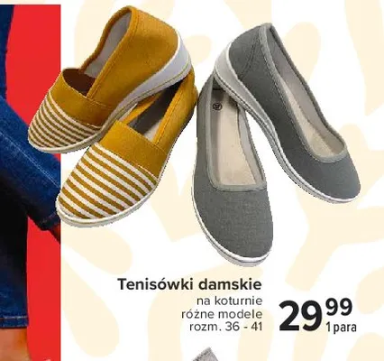 Cena produktu r贸偶ni si臋 w zale偶no艣ci od wybranego sklepu. Produkt Tenis贸wki damskie na koturnie mo偶esz kupi膰 w promocji ju偶 od 39,99 z艂. Najta艅sza oferta, jak膮 mamy w naszej bazie jest z sieci Carrefour. Tenis贸wki damskie na koturnie kosztuje aktualnie 39,99 z艂. Zobacz ofert臋