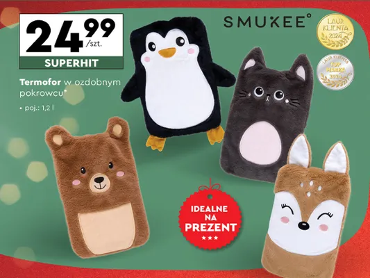 Cena produktu r贸偶ni si臋 w zale偶no艣ci od wybranego sklepu. Niestety nie posiadamy danych o aktualnych promocjach, jednak w艣r贸d archiwalnych ofert Termofor w pluszowym pokrowcu 1.2 l Smukee kosztuje od 24,99 z艂.