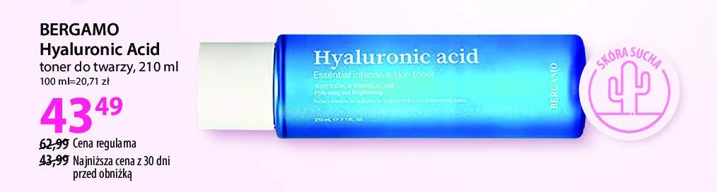 Ile kosztuje Toner do twarzy Bergamo hyaluronic acid?