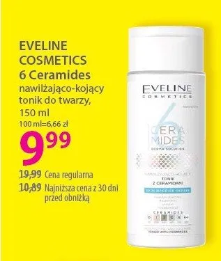Cena produktu różni się w zależności od wybranego sklepu. Niestety nie posiadamy danych o aktualnych promocjach, jednak wśród archiwalnych ofert Tonik do twarzy nawilżająco-kojący Eveline 6 ceramides kosztuje od 9,99 zł do 18,99 zł.