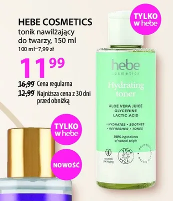 Cena produktu różni się w zależności od wybranego sklepu. Niestety nie posiadamy danych o aktualnych promocjach, jednak wśród archiwalnych ofert Tonik do twarzy nawilżający Hebe professional kosztuje od 11,99 zł do 12,99 zł.