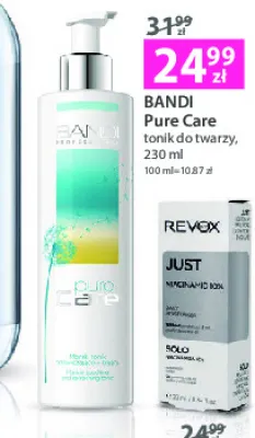 Cena produktu różni się w zależności od wybranego sklepu. Niestety nie posiadamy danych o aktualnych promocjach, jednak wśród archiwalnych ofert Tonik nawilżający z algami Bandi pure care kosztuje od 24,99 zł do 31,99 zł.