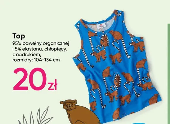 Cena produktu r贸偶ni si臋 w zale偶no艣ci od wybranego sklepu. Niestety nie posiadamy danych o aktualnych promocjach, jednak w艣r贸d archiwalnych ofert Top ch艂opi臋cy 104-134 cm kosztuje od 8 z艂 do 20 z艂.
