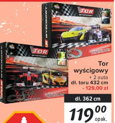 Cena produktu r贸偶ni si臋 w zale偶no艣ci od wybranego sklepu. Niestety nie posiadamy danych o aktualnych promocjach, jednak w艣r贸d archiwalnych ofert Tor wy艣cigowy + 2 auta 362 cm 4kidz kosztuje od 119 z艂.