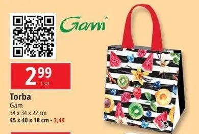 Cena produktu r贸偶ni si臋 w zale偶no艣ci od wybranego sklepu. Niestety nie posiadamy danych o aktualnych promocjach, jednak w艣r贸d archiwalnych ofert Torba na zakupy 34 x 34 x 22 cm Gam kosztuje od 2,99 z艂.