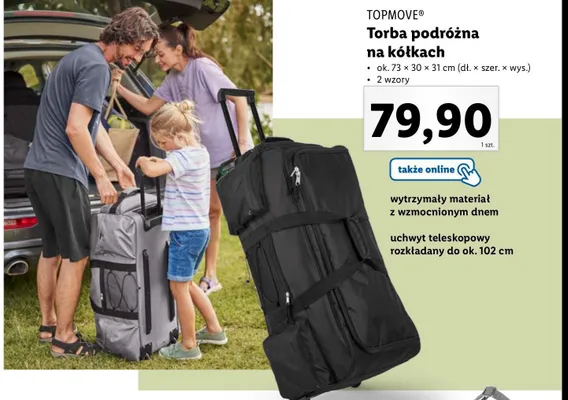 Torba podróżna na kółkach 30 x 73 x 31 cm Topmove aktualnie nie występuje w bazie naszych gazetek promocyjnych. Nie martw się! Gdy tylko pojawi się ciekawa promocja na Torba podróżna na kółkach 30 x 73 x 31 cm Topmove, umieścimy ją na naszej stronie