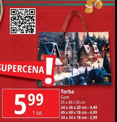 Cena produktu r贸偶ni si臋 w zale偶no艣ci od wybranego sklepu. Niestety nie posiadamy danych o aktualnych promocjach, jednak w艣r贸d archiwalnych ofert Torba prezentowa 45 x 40 x 18 cm Gam kosztuje od 3,99 z艂 do 4,99 z艂.