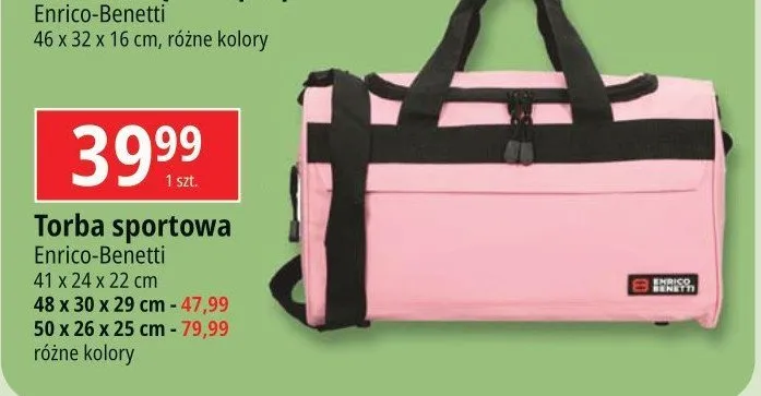 Cena produktu r贸偶ni si臋 w zale偶no艣ci od wybranego sklepu. Niestety nie posiadamy danych o aktualnych promocjach, jednak w艣r贸d archiwalnych ofert Torba sportowa 50 x 26 x 25 cm Enrico benetti kosztuje od 79,99 z艂.
