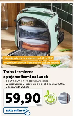 Cena produktu r贸偶ni si臋 w zale偶no艣ci od wybranego sklepu. Niestety nie posiadamy danych o aktualnych promocjach, jednak w艣r贸d archiwalnych ofert Torba termiczna z pojemnikami na lunch Ernesto kosztuje od 49,99 z艂 do 59,9 z艂.