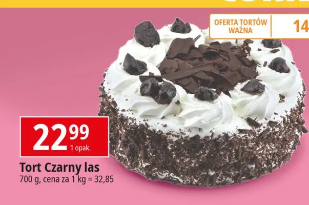 Cena produktu r贸偶ni si臋 w zale偶no艣ci od wybranego sklepu. Niestety nie posiadamy danych o aktualnych promocjach, jednak w艣r贸d archiwalnych ofert Tort czarny las kosztuje od 17,99 z艂 do 24,9 z艂.