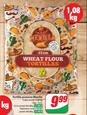 Cena produktu r贸偶ni si臋 w zale偶no艣ci od wybranego sklepu. Niestety nie posiadamy danych o aktualnych promocjach, jednak w艣r贸d archiwalnych ofert Tortilla pszenna 25 cm Mexilla kosztuje od 9,99 z艂.