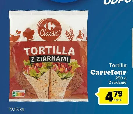 Ile kosztuje Tortilla z ziarnami Carrefour?