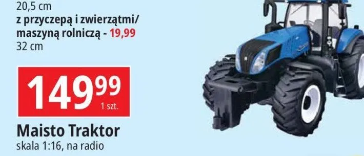 Cena produktu r贸偶ni si臋 w zale偶no艣ci od wybranego sklepu. Niestety nie posiadamy danych o aktualnych promocjach, jednak w艣r贸d archiwalnych ofert Traktor 1:16 kosztuje od 149,99 z艂.