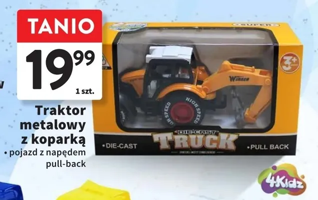 Cena produktu r贸偶ni si臋 w zale偶no艣ci od wybranego sklepu. Niestety nie posiadamy danych o aktualnych promocjach, jednak w艣r贸d archiwalnych ofert Traktor z maszyn膮 4kidz kosztuje od 19,99 z艂.