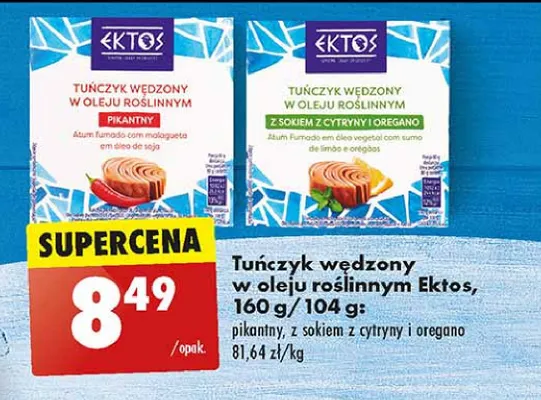 Ile kosztuje Tu艅czyk w臋dzony w oleju ro艣linnym z sokiem z cytryny i oregano Elios?