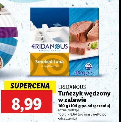 Gdzie mo偶na tanio kupi膰 produkt Tu艅czyk w臋dzony w zalewie z oleju sojowego Eridanous?