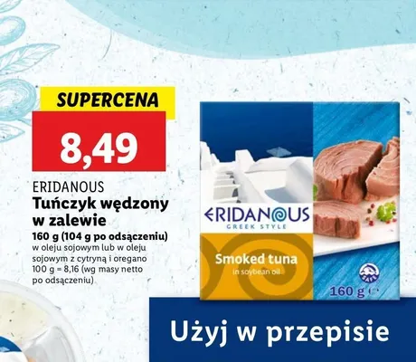 Gdzie mo偶na tanio kupi膰 produkt Tu艅czyk w臋dzony z sokiem cytrynowym i oregano Eridanous?